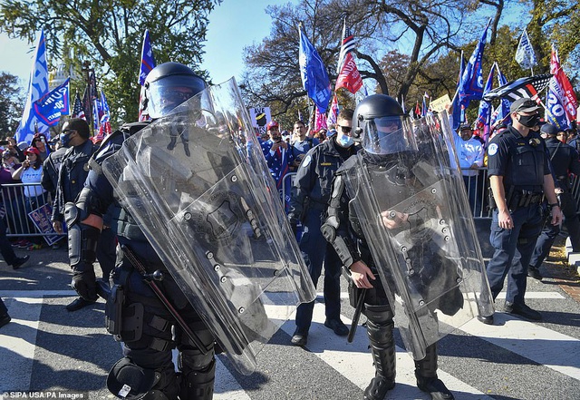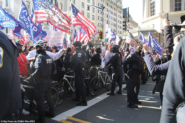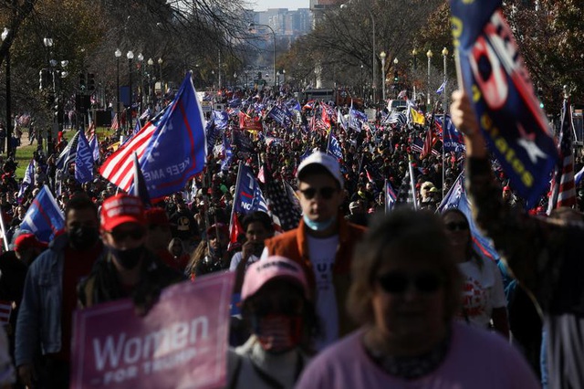 Trong khi Tổng thống Mỹ Donald Trump đang thực hiện chiến dịch pháp lý tại tòa án các bang chiến địa để đảo ngược tình thế, hàng nghìn người ủng hộ ông ngày 14/11 đã đổ về Washington DC tham gia cuộc tuần hành #MillionMAGAMarch – sự kiện được quảng bá là có “quy mô lớn nhất trong lịch sử” ủng hộ ông Trump.Các hình ảnh và video cho thấy các phương tiện của người ủng hộ đổ dồn về thủ đô của Mỹ, và cuộc tuần hành thu hút hàng chục nghìn người ủng hộ ông Trump tham gia. Họ tập trung ở trước những công trình nổi tiếng để phát đi thông điệp phản đối cuộc bầu cử mà họ cáo buộc là gian lận.Người ủng hộ mang theo cờ và các khẩu hiệu ủng hộ Tổng thống Trump tập trung tại quảng trường Freedom Plaza và diễu hành qua trụ sở Tòa án Tối cao. Ước tính, khoảng 10.000 người đã tham gia cuộc tuần hành.Vào khoảng 10h30 sáng, ông Trump rời Nhà Trắng và đoàn xe của ông đã đi qua đám đông người ủng hộ để chào đón họ, trước khi ông di chuyển tới sân golf ở Sterling, Virginia.Người biểu tình vẫy chào khi đoàn xe của ông Trump đi ngang qua.Người ủng hộ ông Trump sau đó di chuyển tới trụ sở Tòa án Tối cao. Các nhà hoạt động cánh tả cũng tới góp mặt để phản đối cuộc tuần hành và đã xảy ra những xung đột nhỏ, nhưng cảnh sát đã nhanh chóng ngăn chặn 2 nhóm đối đầu nhau. Trong ảnh: Một bé gái hoảng loạn khi chứng kiến 2 bên bất đồng quan điểm xảy ra xô xát.Cảnh sát Washington DC cho biết họ đã thực hiện 10 vụ bắt giữ đối với những người bị cáo buộc tấn công cảnh sát, vi phạm quy định vũ khí.Một người ủng hộ ông Trump bị đổ máu sau một cuộc xô xát.Người biểu tình xuất hiện với khẩu hiệu như “Tổng thống tuyệt vời nhất” chỉ ông Trump và “Dừng đánh cắp bầu cử”.Cảnh sát căn ngăn xô xát giữa bên ủng hộ ông Trump và phe phản đối.Lực lượng an ninh trong trang phục bảo hộ đảm bảo an ninh trong cuộc tuần hành.Cảnh sát tạo dải phân cách ngăn 2 phía bất đồng quan điểm xô xát.Ông Trump viện dẫn cáo buộc gian lận bầu cử để phản đối việc truyền thông Mỹ tính toán và gọi đối thủ Joe Biden là “Tổng thống đắc cử”. Ông Trump đang thực hiện các hành động pháp lý để có thể đảo ngược tình thế, nhưng giới quan sát nhận định nỗ lực này khó có thể hiệu quả như ông mong muốn.Người ủng hộ ông Trump tuần hành trước nhà Quốc hội Mỹ.