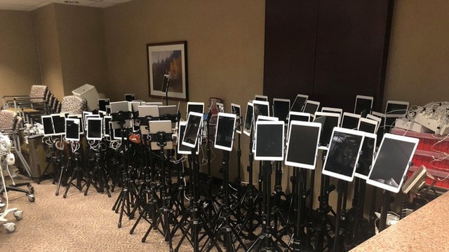 Ngày 4/11, một bác sĩ chia sẻ bức ảnh chụp căn phòng chứa đầy máy tính bảng iPad với chú thích: “Những chiếc iPad này được chuẩn bị để bệnh nhân trong ICU nói lời từ biệt (với người thân). Lạy Chúa”.