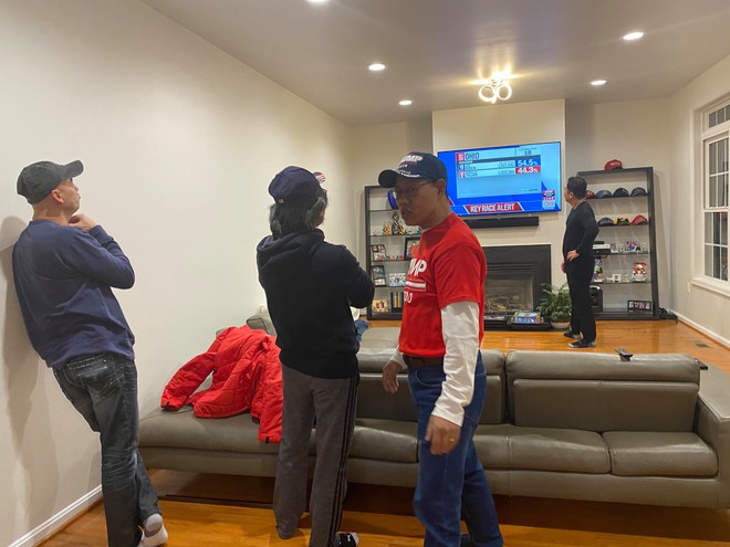 Nhiều cử tri gốc Việt tụ tập tại nhà bạn bè từ lúc chiều tối để theo dõi tường thuật bầu cử tổng thống Mỹ và dự tính thức xuyên đêm 3.11 để xem đến khi có kết quả rõ ràng về việc ai là người thắng cuộc: Tổng thống Trump hay ông Biden.