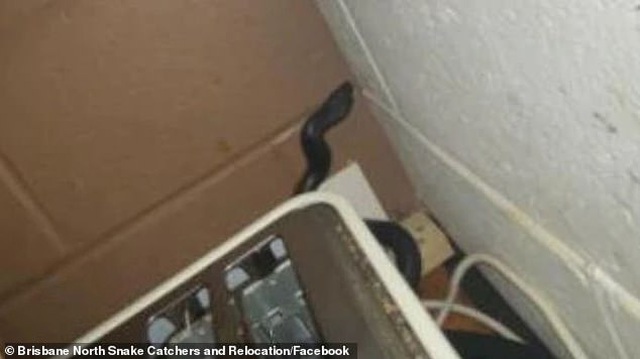 Con rắn đen bụng đỏ trườn vào ngôi nhà ở Nebo Mount, cách Brisbane (Úc) 30 km về phía tây.