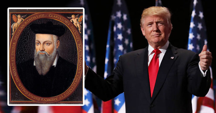 Những lời tiên tri của Nostradamus về TT Donald Trump được cho là ẩn chứa trong những câu thơ tứ tuyệt của Các Thế Kỷ. Từ năm 2016, người ta đã phát hiện rằng nhân vật “Trumpet” được nhắc tới trong lời tiên tri của Nostradamus, người được cho là sẽ phá vỡ các quy tắc, thay đổi luật lệ, rút khỏi (hiệp ước) trước đó… chính là ông Donald Trump. Thật vậy, trong các cuộc vận động tranh cử, ông Trump đã từng tuyên bố xóa bỏ hiệp ước NAFTA, thỏa thuận Biến đổi khí hậu Paris, trục xuất hàng triệu người nhập cư trái phép một khi ông đắc cử Tổng thống Mỹ. Và 4 năm qua đã chứng minh TT Trump thực sự làm được đúng như lời ông nói. Những điều này nghe có vẻ điên rồ, nhưng nó thực sự cho thấy trí tuệ của TT Trump nhìn thấu âm mưu của những kẻ muốn làm suy yếu nước Mỹ và thiết lập trật tự thế giới mới.