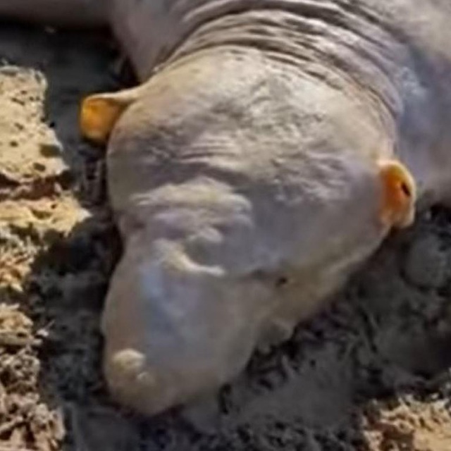 Sinh vật được phát hiện trôi dạt vào bờ biển đảo Crete sau cơn bão. Hình thù của nó rất kỳ lạ với 4 chân ngắn ngủn, da thâm, không có lông, mũi như chiếc vòi. Đặc biệt, mặt của sinh vật này khá giống mặt người.